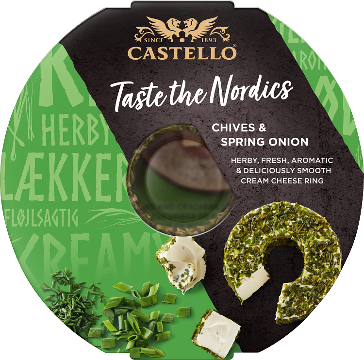 En krämig och len färskostring som rullats varsamt i finhackad gräslök. Denna vackra och friska färskost med klassiskt nordisk smak passar utmärkt till en somrig lunch med sill och potatis, på ett smørrebröd med gravad lax eller på en skiva nybakat surdegsbröd.