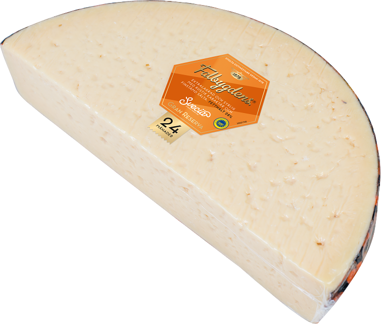 Klassisk svensk ost som tillverkats enligt ursprungligt recept med anor från 1200-talet. Falbygdens® GranRes Svecia lagras omsorgsfullt i 24 månader och hinner då bli riktigt stark och mustig i smaken. Den är kraftfull med gräddighet, sälta, pikanta syror, behaglig beska och lång eftersmak. Servera den som hårdost till ostbricka, på buffén eller som smakrik matlagningsost i rätter där osten ska ta för sig – exempelvis i risotto, paj, sås och sallad.