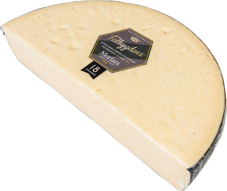 En mycket uppskattad och långlagrad version av Sveriges första brännvinsost. Osten har lagrats i hela 18 månader och sedan smaksatts med ett extra kryddigt brännvin. Extra lagrad ost, som Falbygdens® Morfars Brännvin 18 mån 31%, har en kraftig smak med rejäl sälta. Morfars Brännvin passar utmärkt till skaldjur och i alla recept med en smakrik ost som ingrediens. Precis som annan vällagrad ost är den även god som pålägg. Prova den gärna som lagrad hårdost till ostbricka.