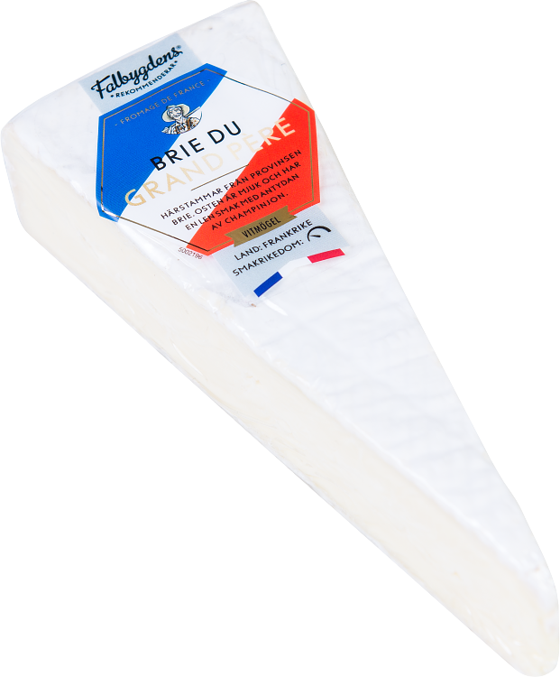 En brieost av mycket hög kvalitet. Falbygdens® Rekommenderar Brie du Grand Père är en fransk, mild dessertost med krämigt len smak med antydan av champinjon. Ursprungligen tillverkad i provinsen Brie nära Paris. Framställd av pastöriserad mjölk med en mjuk, vit skorpa. Mjuk vitmögelost som Brie och Camembert mjuknar snabbt och alltid utifrån och in. När möglet på utsidan är fullt utvecklat är det dags att äta osten. När den är riktigt mogen skall hela osten vara mjuk. Servera gärna denna brieost med fikonmarmelad! Brie du Grand Père är utmärkt till en lyxig ostbricka.