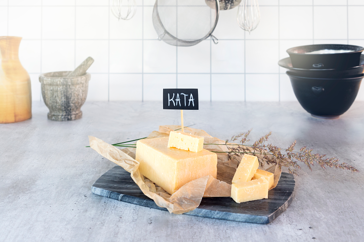 Kata är en lagrad hårdost från Wästgöta kloster, gjord på pastöriserad komjölk från svenska kor. Den har en gräddig och rik arom och djupa smaker som spänner över hela smakregistret. Från en frisk fruktighet och en viss sälta på nosen, till en snäll beska och tydliga toner av smörkola i den långa eftersmaken. Perfekt på ostbrickan, där du kan servera den med en syrlig äppelkompott, kex eller flytande honung med timjan. I glaset häller du med fördel upp en IPA, ett lättare rött, som Cabernet Sauvignon eller Syrah, eller varför inte lite grönt te? En oväntad smakkompis för den djärve är en kopp kaffe med mjölk eller grädde, eller en rökig whisky.